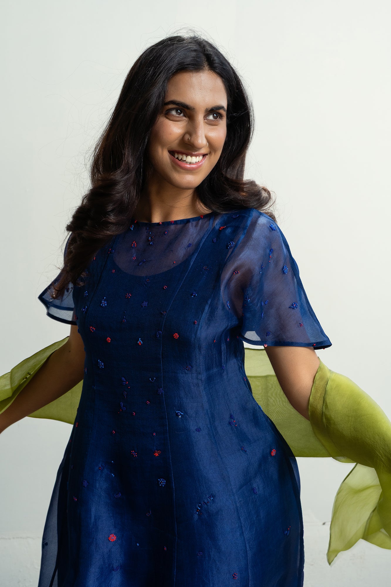 Ann’s Unfiltered Dress is a five-panel A-line dress, admired for its tone-on-tone embroidery and delicate red bead accents. Smart and effortlessly chic, it comes with an attached A-line slip for both ease and elegance.